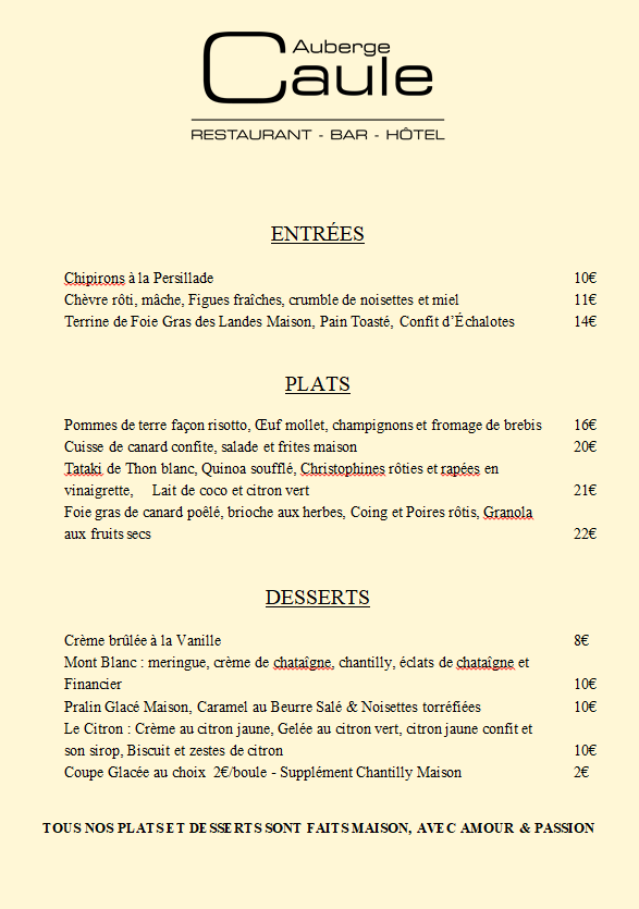 Menu du jour